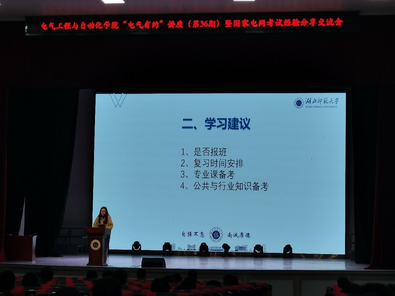 为加强我院学风建设,发挥专业优势,扩宽就业渠道,伟德国际victor1946于20223231830分在湖师大礼堂举办第三十六期“电气有约”暨国家电网考试经验交流分享会。参加本次会议的有电气学院党总支副书记陈江华,学院实验室主任胡非,武汉衡真职业培训学校执行校长刘俊,辅导员王梦茜、黄新望,班主任代表,18级部分学生和19级全体学生。