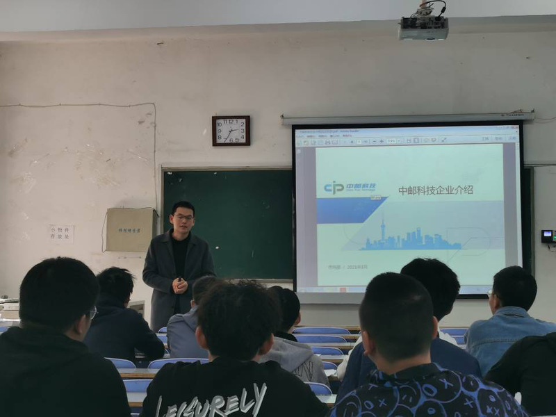校园宣讲正式开始前,中邮科技有限责任公司胡经理播放了公司的宣传短片,在短片中,同学们对公司背景、企业现状、未来愿景等有了大致的了解。宣讲伊始,胡经理就公司的发展历程、部门结构、市场情况、研发团队、薪资待遇、晋升通道等公司基本情况进行介绍,紧接着,通过问答环节积极回应学生关切,解答了学生的相关疑惑,为学生了解行业背景,合理规划职业发展提供帮助。宣讲结束后,招聘的笔试环节顺利进行,有意向的同学纷纷投上简历,参加笔试,并参与到招聘面试环节。