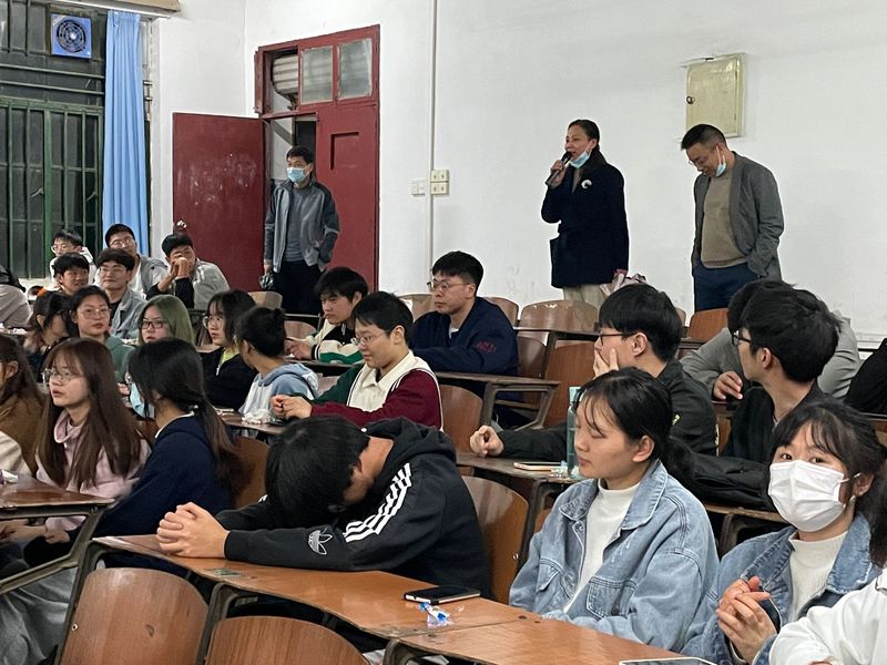 辅导员王梦茜主持大会,她带领同学们追溯大学经历、展望未来发展,鼓励同学们倾吐心声。随后辅导员任小聪通报国内疫情形势,着重分析湖北省疫情状况,传达教育部、省教育厅、市及学校疫情防控管理规定相关精神,并详细讲解了请假、返校、健康日报等学院各项日常管理规定要求。在“倾听你的声音”环节,同学们积极踊跃地发言,大家对于学校的基础设施建设、日常管理制度提出了建议,也对疫情防控形势下的“非必要不外出”的边界表达困惑,老师们对同学们的疑问一一作出解答,帮助同学们排忧解难。陆咏梅老师总结讲话,她对同学们积极遵守学校疫情防控管理规定表示肯定,感谢同学们牺牲小我的不自由换取更大范围的自由,并希望同学们一起努力,共同构建“无疫”校园。对于同学们提出的合理意见建议,她承诺一定及时处理,为学生们提供更好的学习生活环境。