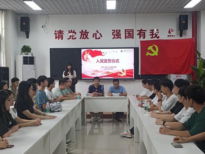 为加强对预备党员的党性教育,2022年6月9日下午15时,伟德国际victor1946在学校至诚“一站式”学生社区举办2022年上半年新发展党员的入党宣誓仪式。参加此次仪式的人员有电气学院党总支书记张国祥、副书记陈江华,学生党支部书记和全体学生党员,仪式由学生第一党支部书记王梦茜主持。