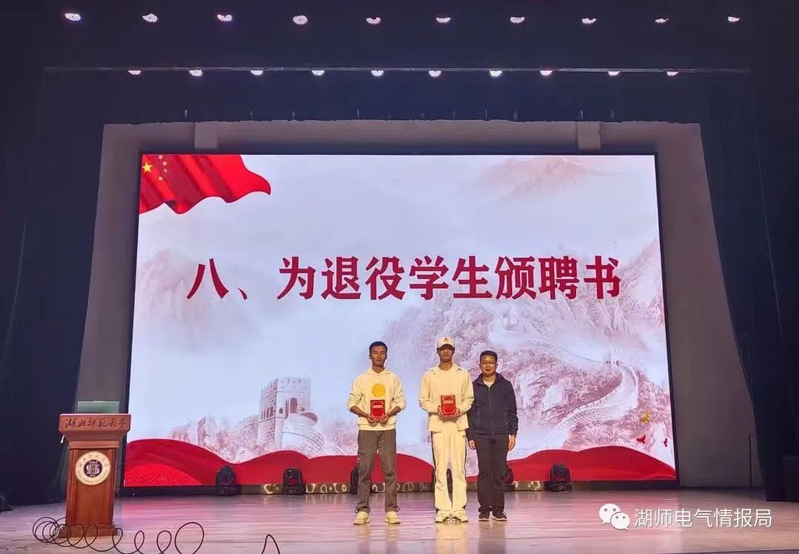 大会由一段国防教育宣传片拉开帷幕。会议伊始,辅导员黄新望上台致辞,他指出此次宣讲会不仅仅是征兵宣传的动员会,更是增强国防安全忧患意识的动员会,希望电气学子能够将家国情怀、时代机遇、个人追求结合起来,树立正确的人生追求。其次,由两位退役士兵同学发言,他们介绍了参军入伍的政策,分享了青春无悔的军旅故事,带来了自己对忧患意识的认识,带领同学们了解国防的重要性。紧接着,由今年报名参军入伍的1905班谢晓添同学介绍自己报名初衷和军营规划,激励在座同学投身军旅中建功新时代。宣讲过程中,同学们积极提出他们心中对于参军流程的疑惑,两位退伍同学热情进行了解答。最后,黄新望对部分参军事宜进行补充并向两位退役学生颁发宣传员聘书。
