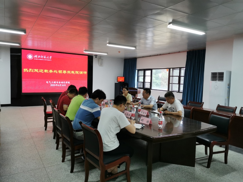 2023616日上午,教务处胡艳军处长一行来我院就一流专业建设的研究与实践、劳动教育课程体系研究与实践等两方面工作进行调研。教务处副处长黄海军,教研科负责人和我院院长詹习生、各系主任、实验室主任、教学办负责人等参加会议。
