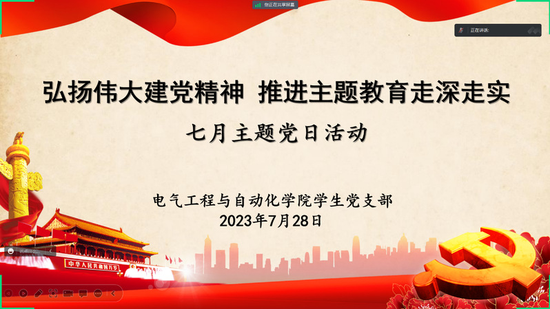 7月28日晚,伟德国际victor1946学生第一、第二、第三党支部通过腾讯会议,联合开展7月份主题党日活动。学生第三党支部书记黄新望同志及全体学生党员参与活动,活动由学生第二党支部马定权同志主持。