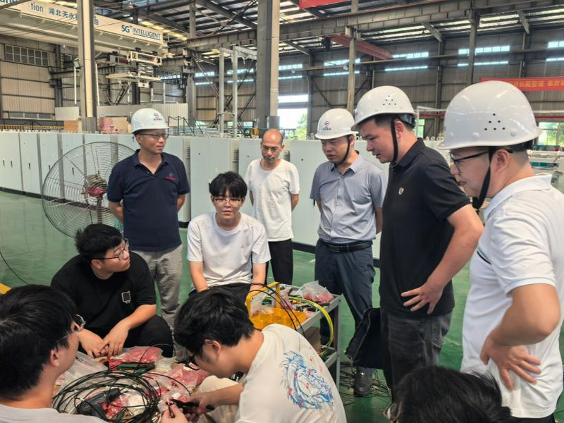 为深入了解学生实习动态,强化校企协同育人成效,及时解决实习过程中的问题,8 月 24 日,电气学院副院长杨青胜带领实习指导教师庞昭、于俊,先后前往湖北网安科技有限公司、湖北天华智能装备股份有限公司、黄石科威自控有限公司,开展2026届毕业实习中期检查工作,为学生实习成长保驾护航。