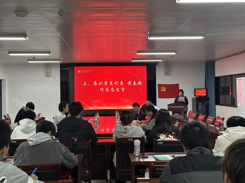 材料科学与工程学院2401班黄春艳作为学员代表发言。她代表全体学员感谢学校及学院提供的宝贵学习机会,并结合青年使命,提出与同学们共勉的三种品质:一是锤炼“不畏浮云遮望眼”的理论清醒,将党的理论转化为分析问题的思想武器;二是锤炼“宝剑锋从磨砺出”的党性坚韧,以恒心深化思想认识;三是锤炼“绝知此事要躬行”的实干精神,把理想信念落实到专业学习与日常行动中,表达了全体学员争取早日入党、贡献青春力量的决心。