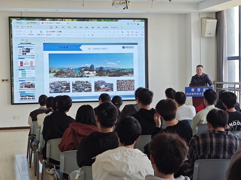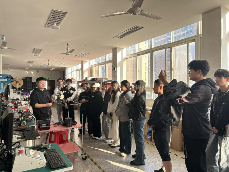 10 月 28 日,2405 班在胡惠敏老师的带领下先赴湖北博控自动化科技股份有限公司。公司总经理以专题讲解形式,介绍废旧新能源机动车柔性拆解线、循环再利用储能技术的研发成果与应用,让学子理解自动化系统在绿色循环经济及复杂拆解流程中的核心作用;随后学子走进生产车间,观摩安全气囊引爆装置、内饰件拆解等工位专用设备,感受自动化技术对生产效率与作业安全性的提升作用。