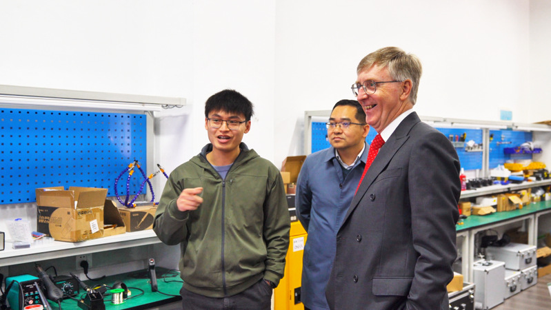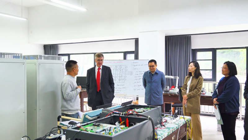 随后,Paul Hanna教授一行参观了我院工业机器人与智能制造实验室、微控制器与智能机器人实验室、运动控制综合实验室、电力系统继电保护实验室等教学实验室及智能车创新实践基地。Paul Hanna授深入了解实验教学设备、实验教学课程运行情况,对我院实验教学硬件条件、教学标准、实践育人支撑能力给予了充分肯定。